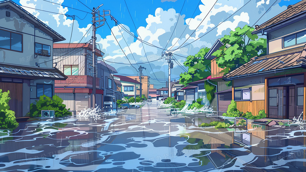 本作品内容为夏季水淹街道手绘插画, 格式为 jpg, 大小4 MB, 图片尺寸为2912 x 1632, 源文件无水印, 欢迎使用熊猫办公。 如认为平台内容涉嫌侵权,可通过邮件:tousu@tukuppt.com提出书面通知,我们将及时处理。