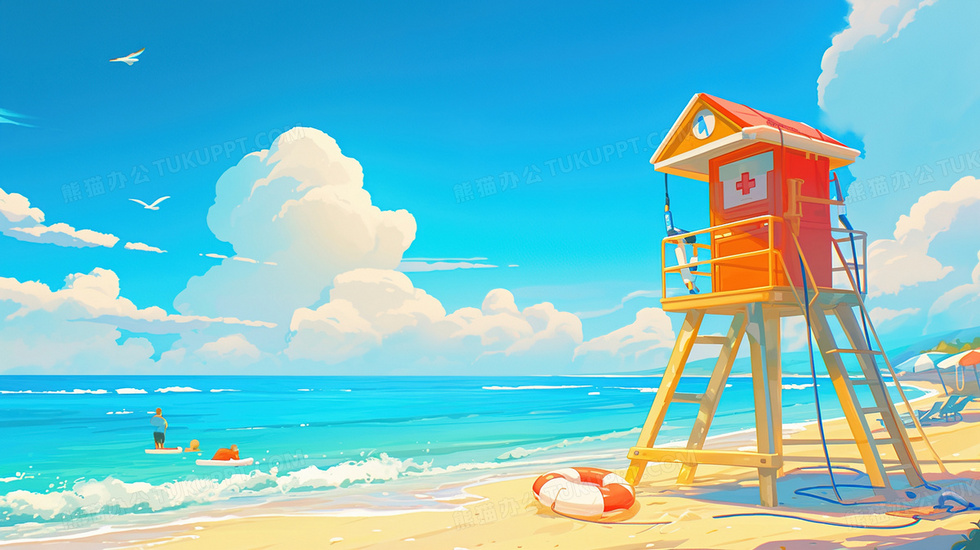 本作品内容为蓝天白云海边防溺水救援救生圈插画, 格式为 jpg, 大小3 MB, 图片尺寸为2912 x 1632, 源文件无水印, 欢迎使用熊猫办公。 如认为平台内容涉嫌侵权,可通过邮件:tousu@tukuppt.com提出书面通知,我们将及时处理。