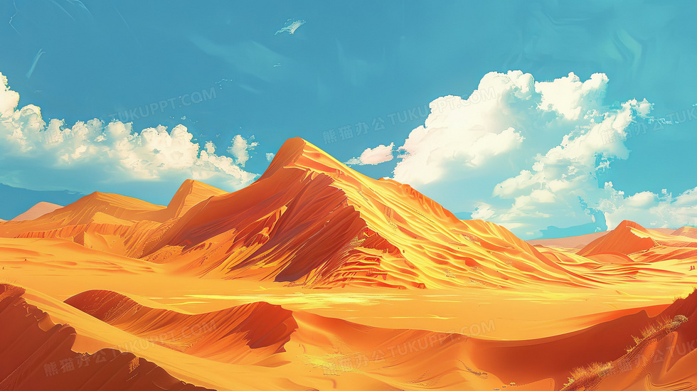 本作品内容为卡通金色沙漠风光背景, 格式为 jpg, 大小5 MB, 图片尺寸为2912 x 1632, 作品中背景图片无需修改, 源文件无水印,可以直接使用, 欢迎使用熊猫办公。 如认为平台内容涉嫌侵权,可通过邮件:tousu@tukuppt.com提出书面通知,我们将及时处理。