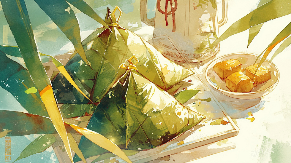 本作品内容为桌面上的端午美食粽子插画, 格式为 jpg, 大小4 MB, 图片尺寸为2912 x 1632, 源文件无水印, 欢迎使用熊猫办公。 如认为平台内容涉嫌侵权,可通过邮件:tousu@tukuppt.com提出书面通知,我们将及时处理。