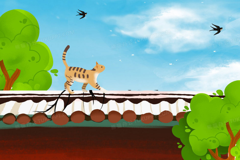 本作品内容为春季小花猫沿着屋顶行走手绘插画, 格式为 psd, 大小31 MB, 请使用软件PhotoShop(CS6)打开, 源文件无水印, 欢迎使用熊猫办公。 如认为平台内容涉嫌侵权,可通过邮件:tousu@tukuppt.com提出书面通知,我们将及时处理。