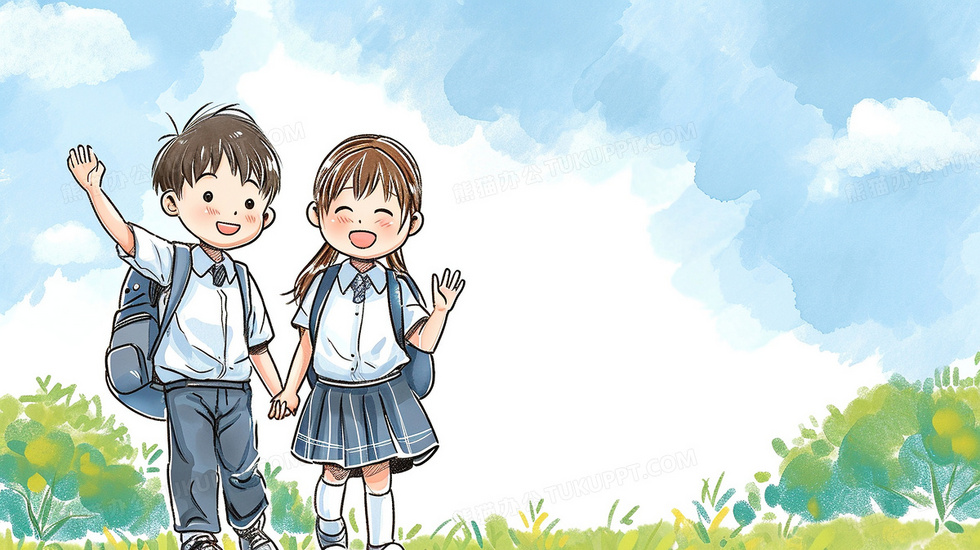本作品内容为新学期蓝天白云下手拉手上学小朋友插画, 格式为 jpg, 大小3 MB, 图片尺寸为2912 x 1632, 源文件无水印, 欢迎使用熊猫办公。 如认为平台内容涉嫌侵权,可通过邮件:tousu@tukuppt.com提出书面通知,我们将及时处理。