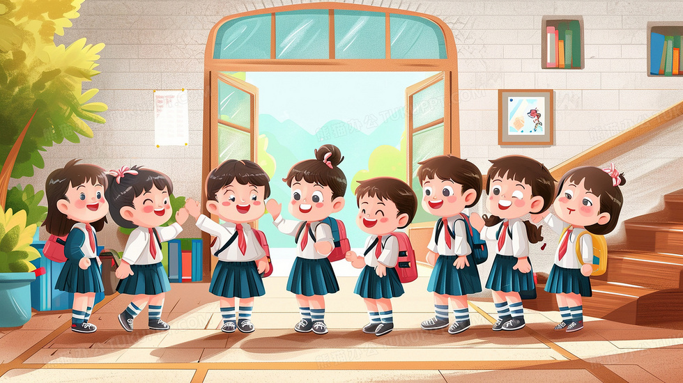 首页 > 插画 > 科技艺术 > 卡通漫画 > 开学季新学期校园内小学生插画
