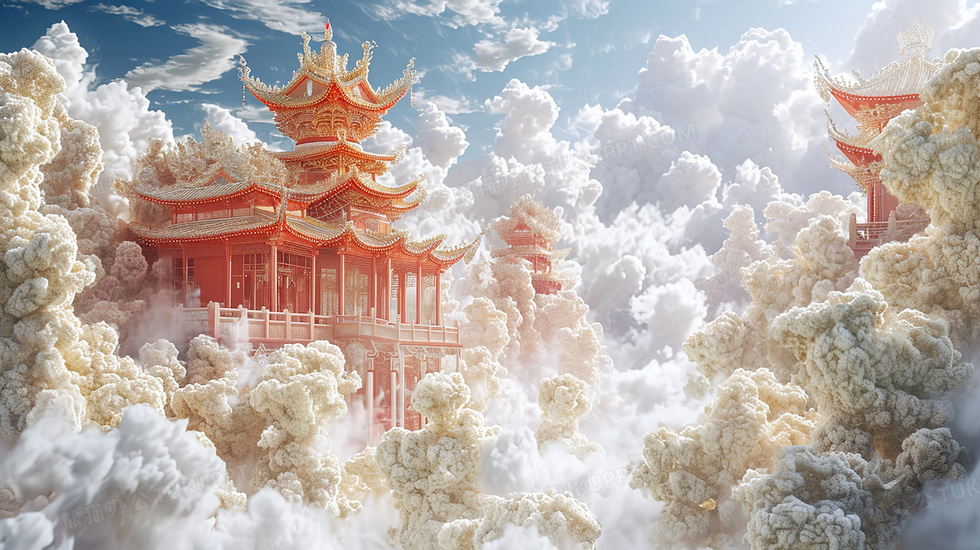 本作品内容为云层中金碧辉煌的中国风建筑插画, 格式为 jpg, 大小3 MB, 图片尺寸为2912 x 1632, 源文件无水印, 欢迎使用熊猫办公。 如认为平台内容涉嫌侵权,可通过邮件:tousu@tukuppt.com提出书面通知,我们将及时处理。