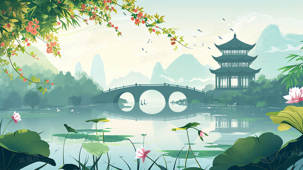 本作品内容为唯美中国风荷花湖心亭插画, 格式为 jpg, 大小3 MB, 图片尺寸为2912 x 1632, 源文件无水印, 欢迎使用熊猫办公。 如认为平台内容涉嫌侵权,可通过邮件:tousu@tukuppt.com提出书面通知,我们将及时处理。