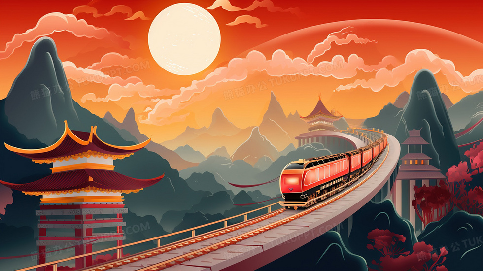 本作品内容为国潮春运铁路交通运输风景创意插画, 格式为 jpg, 大小3 MB, 图片尺寸为2912 x 1632, 源文件无水印, 欢迎使用熊猫办公。 如认为平台内容涉嫌侵权,可通过邮件:tousu@tukuppt.com提出书面通知,我们将及时处理。