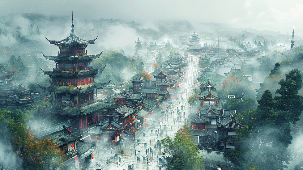 本作品内容为中国风古典街道水墨插画, 格式为 jpg, 大小4 MB, 图片尺寸为2912 x 1632, 源文件无水印, 欢迎使用熊猫办公。 如认为平台内容涉嫌侵权,可通过邮件:tousu@tukuppt.com提出书面通知,我们将及时处理。