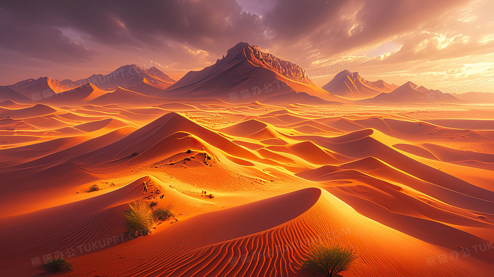 本作品内容为夕阳黄昏沙漠风景背景, 格式为 jpg, 大小3 MB, 图片尺寸为2912 x 1632, 作品中背景图片无需修改, 源文件无水印,可以直接使用, 欢迎使用熊猫办公。 如认为平台内容涉嫌侵权,可通过邮件:tousu@tukuppt.com提出书面通知,我们将及时处理。