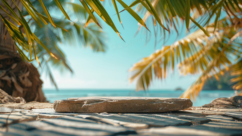 首页 > 背景图库 > 科技艺术 > 海报banner > 沙滩度假休闲海边风光石头展台背景