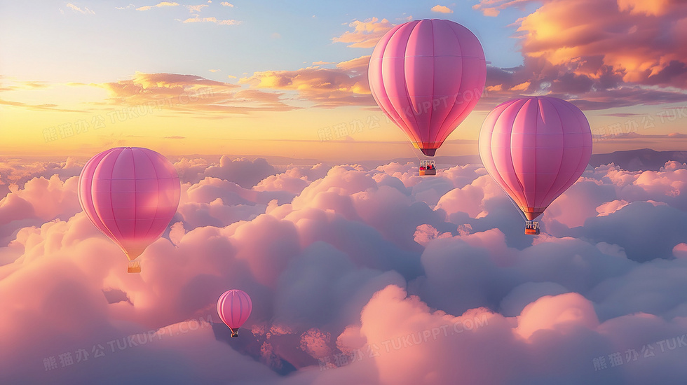 本作品内容为粉色云层里的热气球插画, 格式为 jpg, 大小3 MB, 图片尺寸为2912 x 1632, 源文件无水印, 欢迎使用熊猫办公。 如认为平台内容涉嫌侵权,可通过邮件:tousu@tukuppt.com提出书面通知,我们将及时处理。