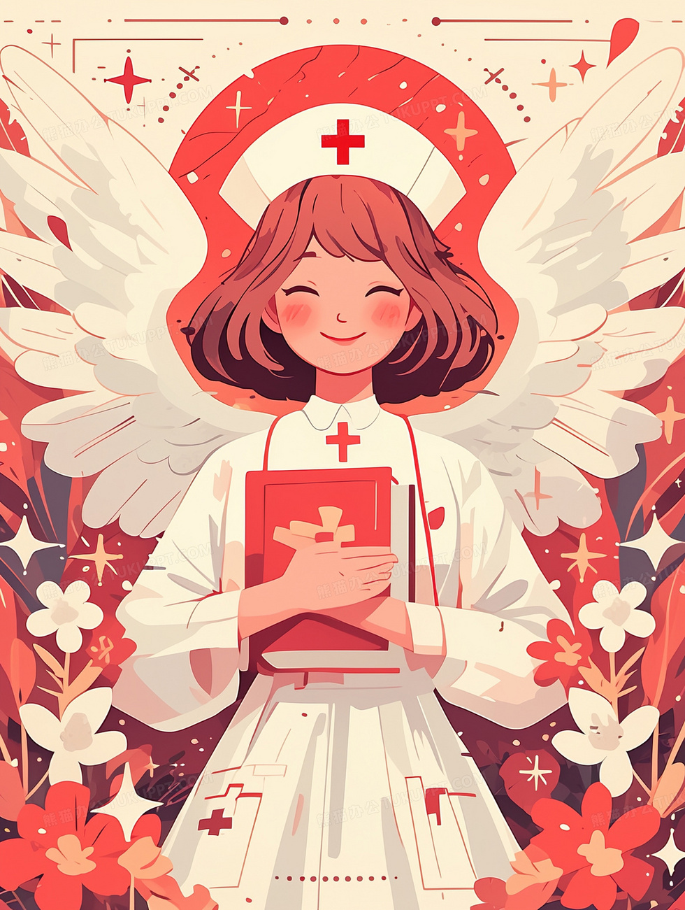 本作品内容为粉色卡通可爱护士节医疗插画, 格式为 jpg, 大小3 MB, 图片尺寸为1856 x 2464, 源文件无水印, 欢迎使用熊猫办公。 如认为平台内容涉嫌侵权,可通过邮件:tousu@tukuppt.com提出书面通知,我们将及时处理。