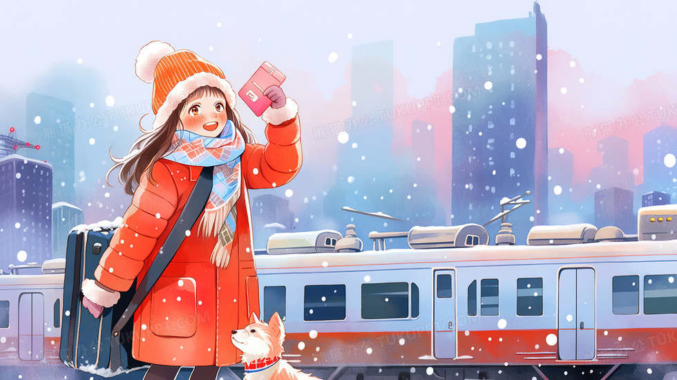 本作品内容为冬天春运女孩背着行李包返乡回家插画, 格式为 jpg, 大小3 MB, 图片尺寸为2912 x 1632, 源文件无水印, 欢迎使用熊猫办公。 如认为平台内容涉嫌侵权,可通过邮件:tousu@tukuppt.com提出书面通知,我们将及时处理。