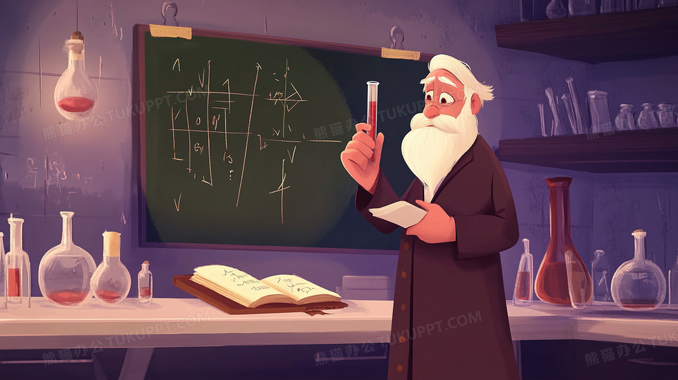 本作品内容为实验室内老科学家研究科学实验插画, 格式为 jpg, 大小2 MB, 图片尺寸为2912 x 1632, 源文件无水印, 欢迎使用熊猫办公。 如认为平台内容涉嫌侵权,可通过邮件:tousu@tukuppt.com提出书面通知,我们将及时处理。