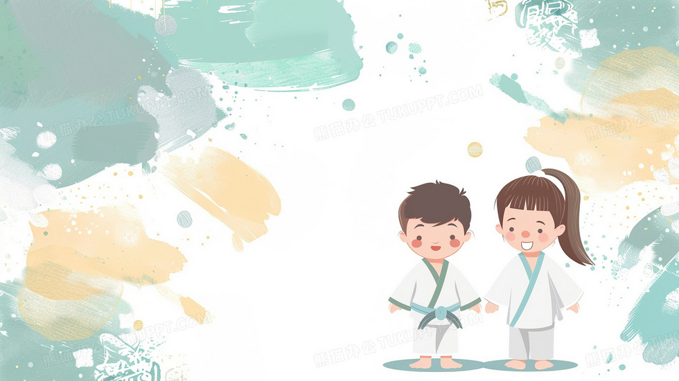 本作品内容为卡通儿童跆拳道背景, 格式为 jpg, 大小2 MB, 图片尺寸为2912 x 1632, 作品中背景图片无需修改, 源文件无水印,可以直接使用, 欢迎使用熊猫办公。 如认为平台内容涉嫌侵权,可通过邮件:tousu@tukuppt.com提出书面通知,我们将及时处理。