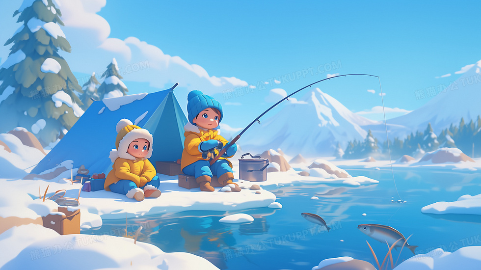 本作品内容为冬令营小朋友在湖面冰钓厚涂场景插画, 格式为 jpg, 大小6 MB, 图片尺寸为2912 x 1632, 源文件无水印, 欢迎使用熊猫办公。 如认为平台内容涉嫌侵权,可通过邮件:tousu@tukuppt.com提出书面通知,我们将及时处理。