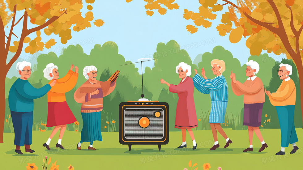 本作品内容为老年人公园听广播跳广场舞插画, 格式为 jpg, 大小3 MB, 图片尺寸为2912 x 1632, 源文件无水印, 欢迎使用熊猫办公。 如认为平台内容涉嫌侵权,可通过邮件:tousu@tukuppt.com提出书面通知,我们将及时处理。