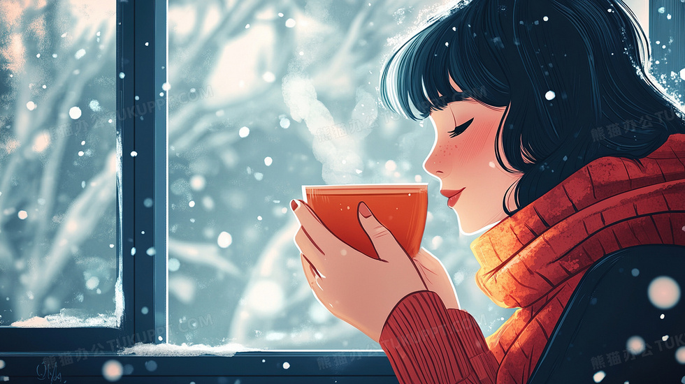 本作品内容为冬天女孩喝热饮取暖保暖插画, 格式为 jpg, 大小3 MB, 图片尺寸为2912 x 1632, 源文件无水印, 欢迎使用熊猫办公。 如认为平台内容涉嫌侵权,可通过邮件:tousu@tukuppt.com提出书面通知,我们将及时处理。