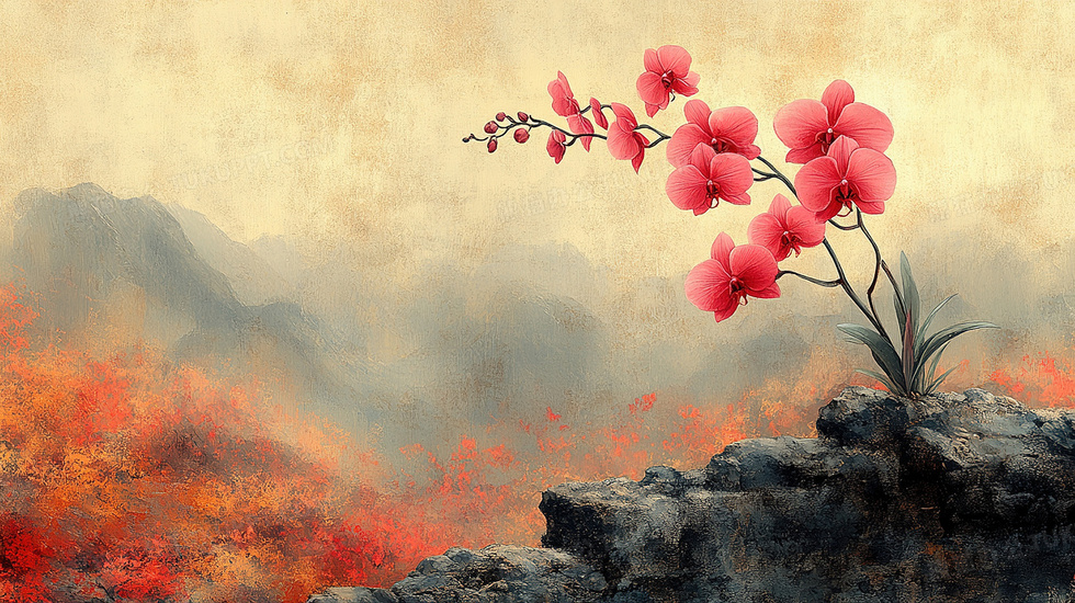本作品内容为中国风国画兰花插画, 格式为 jpg, 大小5 MB, 图片尺寸为2912 x 1632, 源文件无水印, 欢迎使用熊猫办公。 如认为平台内容涉嫌侵权,可通过邮件:tousu@tukuppt.com提出书面通知,我们将及时处理。