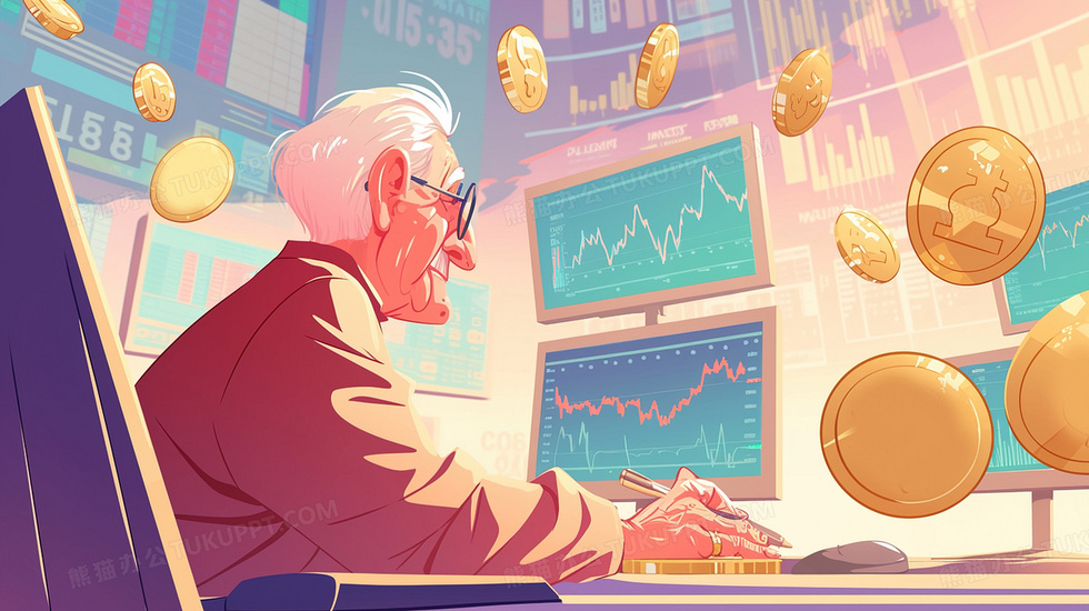 本作品内容为查看股市走势图的老爷爷金融投资插画, 格式为 jpg, 大小2 MB, 图片尺寸为2912 x 1632, 源文件无水印, 欢迎使用熊猫办公。 如认为平台内容涉嫌侵权,可通过邮件:tousu@tukuppt.com提出书面通知,我们将及时处理。