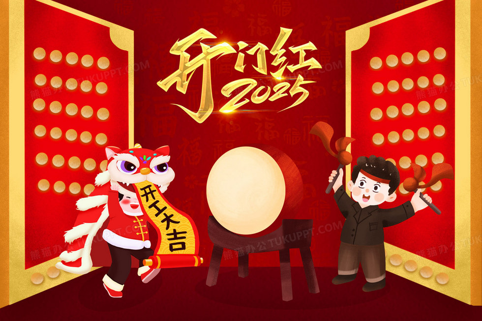 本作品内容为新年开工大吉红色大门舞狮老板打鼓庆祝开门红插画, 格式为 psd, 大小60 MB, 请使用软件PhotoShop(CC)打开, 源文件无水印, 欢迎使用熊猫办公。 如认为平台内容涉嫌侵权,可通过邮件:tousu@tukuppt.com提出书面通知,我们将及时处理。