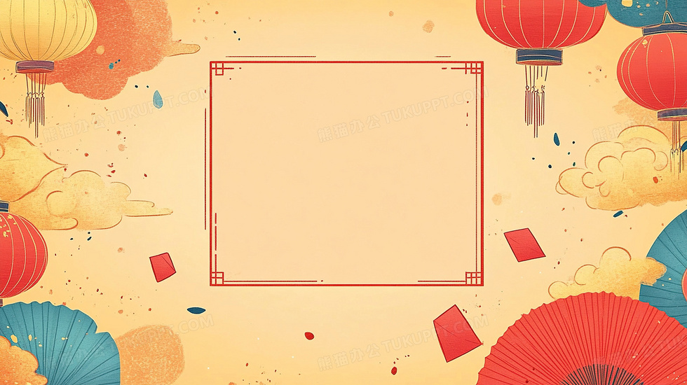 本作品内容为卡通新年边框背景, 格式为 jpg, 大小3 MB, 图片尺寸为2912 x 1632, 作品中背景图片无需修改, 源文件无水印,可以直接使用, 欢迎使用熊猫办公。 如认为平台内容涉嫌侵权,可通过邮件:tousu@tukuppt.com提出书面通知,我们将及时处理。