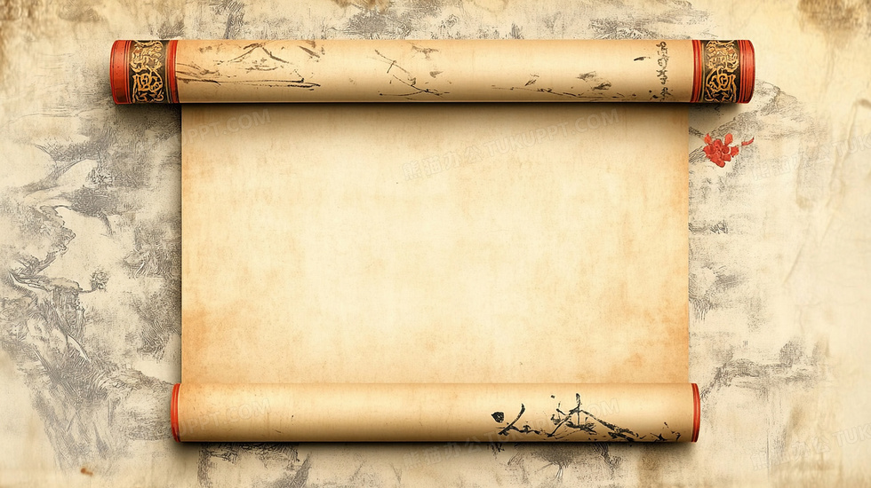 本作品内容为复古卷轴边框背景, 格式为 jpg, 大小3 MB, 图片尺寸为2912 x 1632, 作品中背景图片无需修改, 源文件无水印,可以直接使用, 欢迎使用熊猫办公。 如认为平台内容涉嫌侵权,可通过邮件:tousu@tukuppt.com提出书面通知,我们将及时处理。