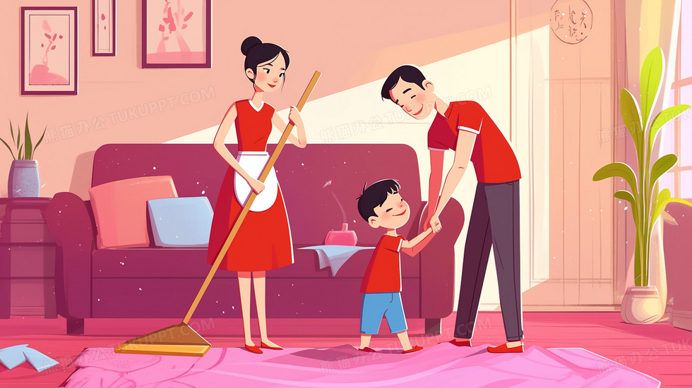 本作品内容为爸爸妈妈打扫卫生男孩捣乱创意插画, 格式为 jpg, 大小2 MB, 图片尺寸为2912 x 1632, 源文件无水印, 欢迎使用熊猫办公。 如认为平台内容涉嫌侵权,可通过邮件:tousu@tukuppt.com提出书面通知,我们将及时处理。