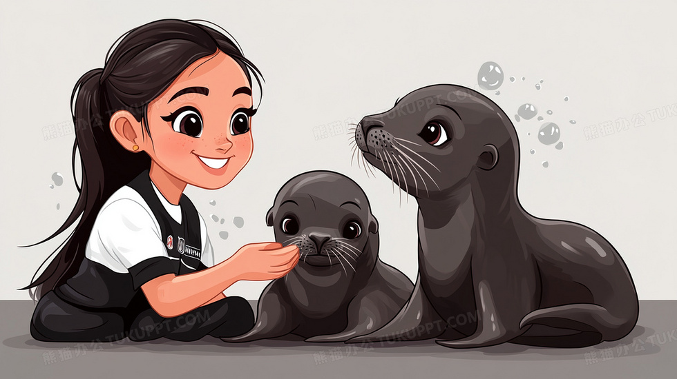本作品内容为手绘饲养员和海狮玩耍的插画, 格式为 jpg, 大小2 MB, 图片尺寸为2912 x 1632, 源文件无水印, 欢迎使用熊猫办公。 如认为平台内容涉嫌侵权,可通过邮件:tousu@tukuppt.com提出书面通知,我们将及时处理。