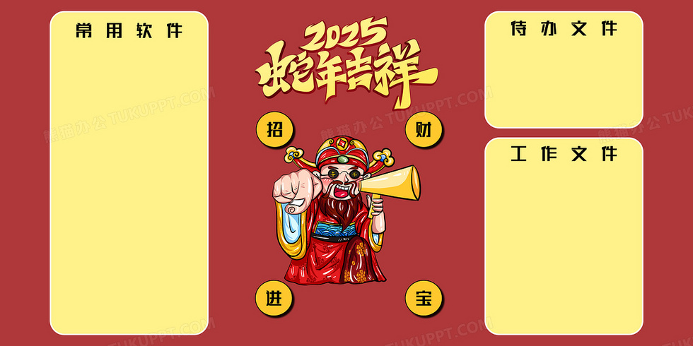 本作品内容为卡通简约财神分区壁纸, 格式为 psd, 大小7 MB, 图片尺寸为4724 x 2362, 作品中背景图片无需修改, 源文件无水印,可以直接使用, 欢迎使用熊猫办公。 如认为平台内容涉嫌侵权,可通过邮件:tousu@tukuppt.com提出书面通知,我们将及时处理。