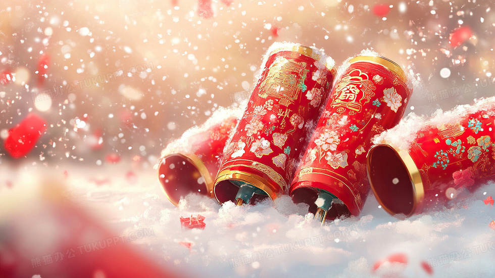 本作品内容为喜庆新年雪地里的炮竹插画, 格式为 jpg, 大小3 MB, 图片尺寸为2912 x 1632, 源文件无水印, 欢迎使用熊猫办公。 如认为平台内容涉嫌侵权,可通过邮件:tousu@tukuppt.com提出书面通知,我们将及时处理。