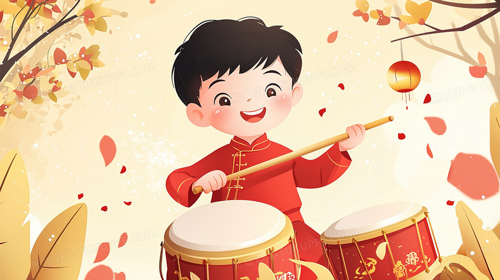 本作品内容为春节敲打圆鼓的可爱卡通小男孩插画, 格式为 jpg, 大小2 MB, 图片尺寸为2912 x 1632, 源文件无水印, 欢迎使用熊猫办公。 如认为平台内容涉嫌侵权,可通过邮件:tousu@tukuppt.com提出书面通知,我们将及时处理。
