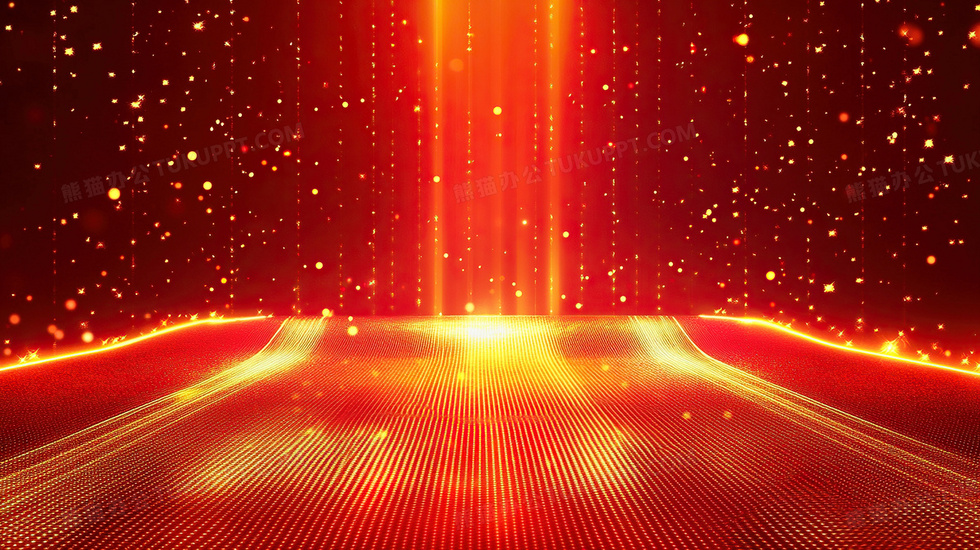 本作品内容为红金光效商务会议年会背景, 格式为 jpg, 大小4 MB, 图片尺寸为2912 x 1632, 作品中背景图片无需修改, 源文件无水印,可以直接使用, 欢迎使用熊猫办公。 如认为平台内容涉嫌侵权,可通过邮件:tousu@tukuppt.com提出书面通知,我们将及时处理。