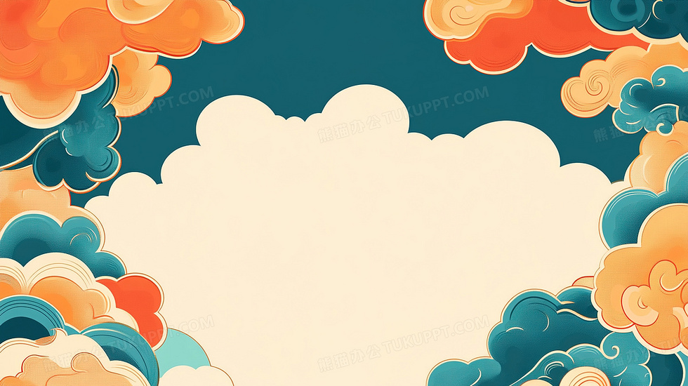 本作品内容为祥云边框简洁背景, 格式为 jpg, 大小7 MB, 图片尺寸为5824 x 3264, 作品中背景图片无需修改, 源文件无水印,可以直接使用, 欢迎使用熊猫办公。 如认为平台内容涉嫌侵权,可通过邮件:tousu@tukuppt.com提出书面通知,我们将及时处理。