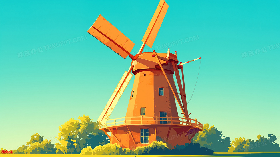 本作品内容为卡通风车建筑草地创意背景, 格式为 jpg, 大小2 MB, 图片尺寸为2912 x 1632, 作品中背景图片无需修改, 源文件无水印,可以直接使用, 欢迎使用熊猫办公。 如认为平台内容涉嫌侵权,可通过邮件:tousu@tukuppt.com提出书面通知,我们将及时处理。