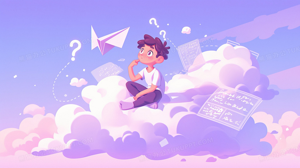 本作品内容为唯美梦幻坐云层上思考问题的男孩卡通背景, 格式为 jpg, 大小2 MB, 图片尺寸为2912 x 1632, 作品中背景图片无需修改, 源文件无水印,可以直接使用, 欢迎使用熊猫办公。 如认为平台内容涉嫌侵权,可通过邮件:tousu@tukuppt.com提出书面通知,我们将及时处理。