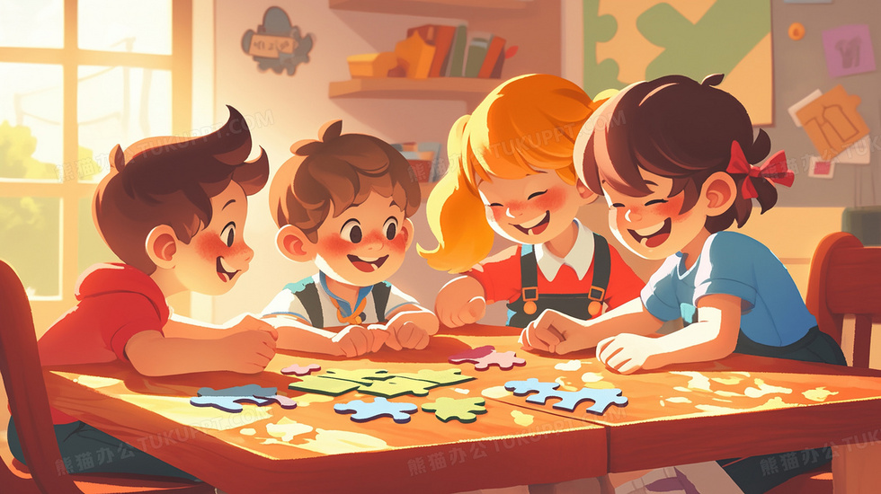 本作品内容为小朋友一起桌面玩拼图插画, 格式为 jpg, 大小2 MB, 图片尺寸为2912 x 1632, 源文件无水印, 欢迎使用熊猫办公。 如认为平台内容涉嫌侵权,可通过邮件:tousu@tukuppt.com提出书面通知,我们将及时处理。