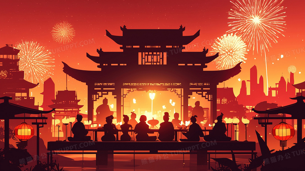 本作品内容为跨年夜观赏晚会烟花表演的人们插画, 格式为 jpg, 大小3 MB, 图片尺寸为2912 x 1632, 源文件无水印, 欢迎使用熊猫办公。 如认为平台内容涉嫌侵权,可通过邮件:tousu@tukuppt.com提出书面通知,我们将及时处理。