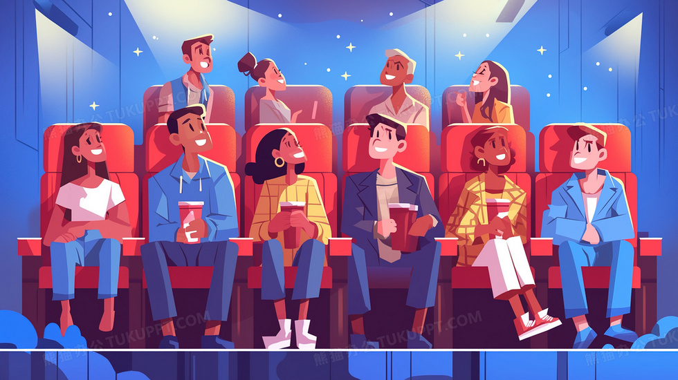本作品内容为电影院看电影吃爆米花的青年观众插画, 格式为 jpg, 大小2 MB, 图片尺寸为2912 x 1632, 源文件无水印, 欢迎使用熊猫办公。 如认为平台内容涉嫌侵权,可通过邮件:tousu@tukuppt.com提出书面通知,我们将及时处理。