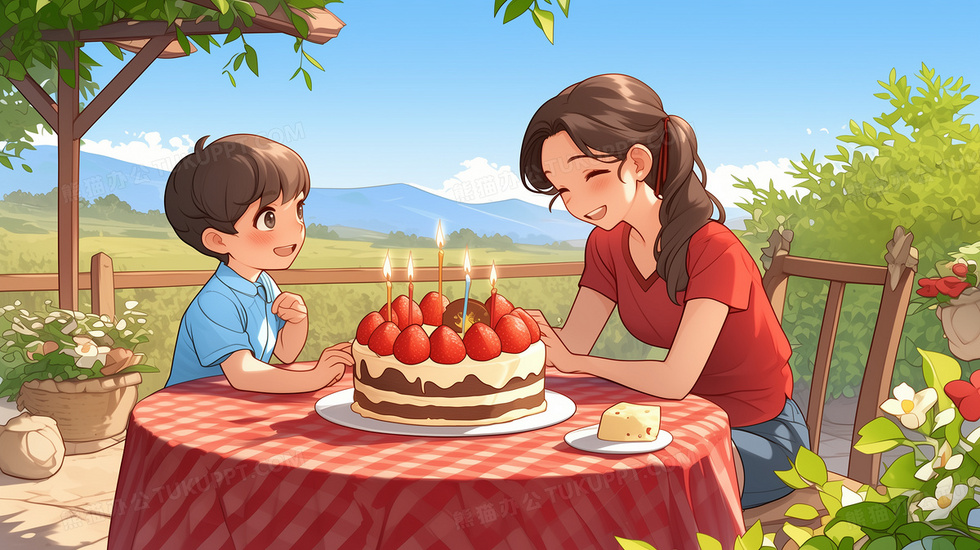 本作品内容为妈妈和儿子在家中过生日插画, 格式为 jpg, 大小5 MB, 图片尺寸为2912 x 1632, 源文件无水印, 欢迎使用熊猫办公。 如认为平台内容涉嫌侵权,可通过邮件:tousu@tukuppt.com提出书面通知,我们将及时处理。