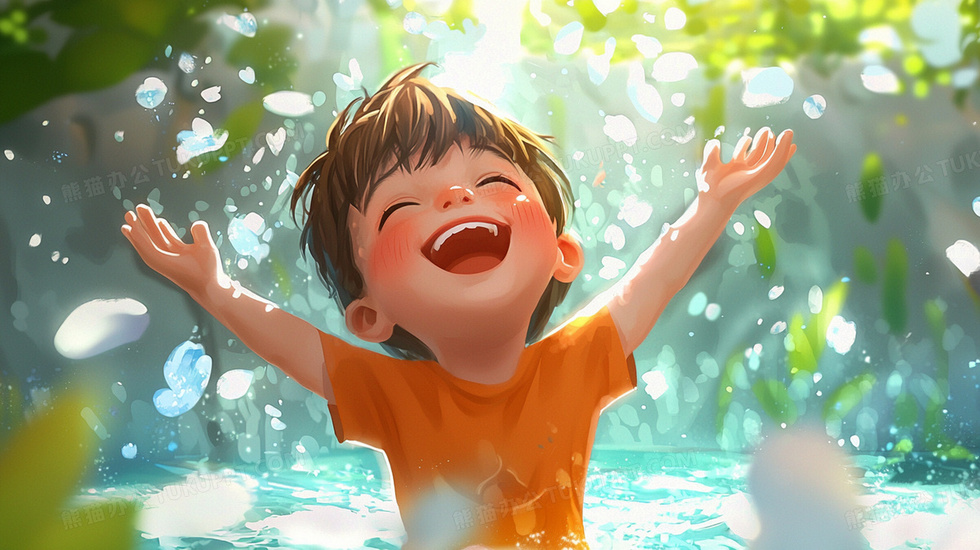本作品内容为开心玩水大笑的卡通男孩插画, 格式为 jpg, 大小2 MB, 图片尺寸为1456 x 816, 源文件无水印, 欢迎使用熊猫办公。 如认为平台内容涉嫌侵权,可通过邮件:tousu@tukuppt.com提出书面通知,我们将及时处理。