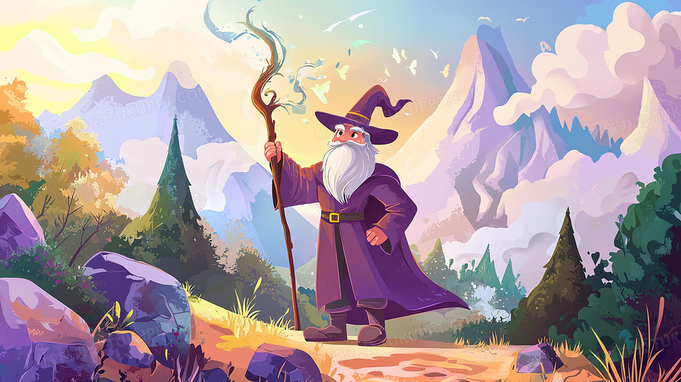本作品内容为童话故事虚拟人物卡通老魔法师插画, 格式为 jpg, 大小3 MB, 图片尺寸为2912 x 1632, 源文件无水印, 欢迎使用熊猫办公。 如认为平台内容涉嫌侵权,可通过邮件:tousu@tukuppt.com提出书面通知,我们将及时处理。