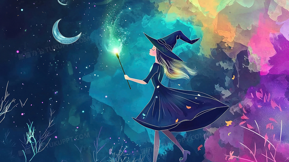 本作品内容为童话故事丽释放魔法的女巫卡通人物插画, 格式为 jpg, 大小3 MB, 图片尺寸为2912 x 1632, 源文件无水印, 欢迎使用熊猫办公。 如认为平台内容涉嫌侵权,可通过邮件:tousu@tukuppt.com提出书面通知,我们将及时处理。