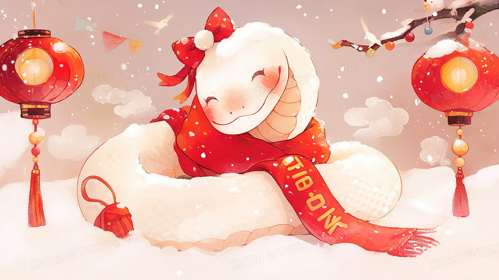 本作品内容为冬天春节戴红围巾卡通拟人蛇插画, 格式为 jpg, 大小3 MB, 图片尺寸为2912 x 1632, 源文件无水印, 欢迎使用熊猫办公。 如认为平台内容涉嫌侵权,可通过邮件:tousu@tukuppt.com提出书面通知,我们将及时处理。