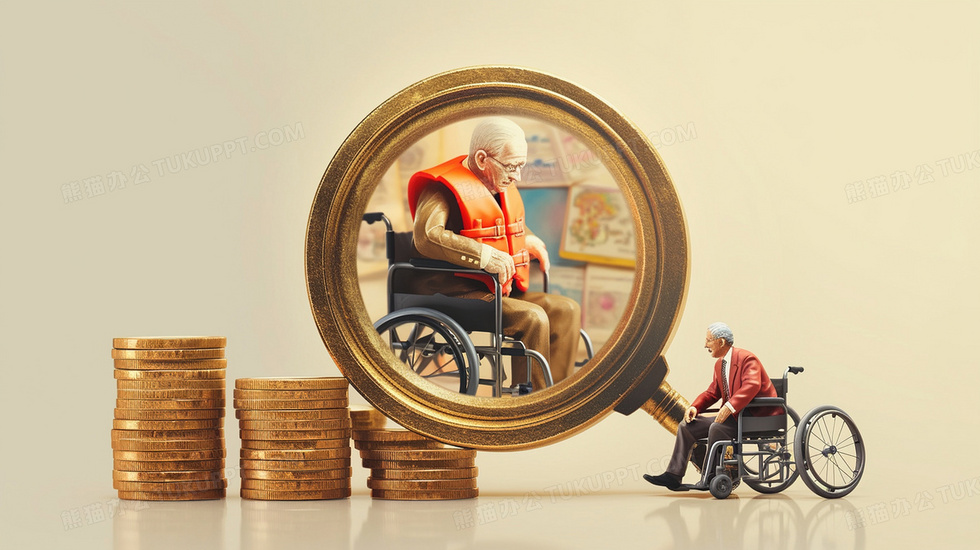 本作品内容为放大镜里的微缩轮椅老人银发经济创意插画, 格式为 jpg, 大小2 MB, 图片尺寸为2912 x 1632, 源文件无水印, 欢迎使用熊猫办公。 如认为平台内容涉嫌侵权,可通过邮件:tousu@tukuppt.com提出书面通知,我们将及时处理。