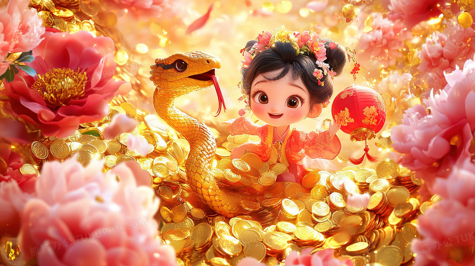 本作品内容为蛇年牡丹花金币与蛇卡通女孩插画, 格式为 jpg, 大小4 MB, 图片尺寸为2912 x 1632, 源文件无水印, 欢迎使用熊猫办公。 如认为平台内容涉嫌侵权,可通过邮件:tousu@tukuppt.com提出书面通知,我们将及时处理。