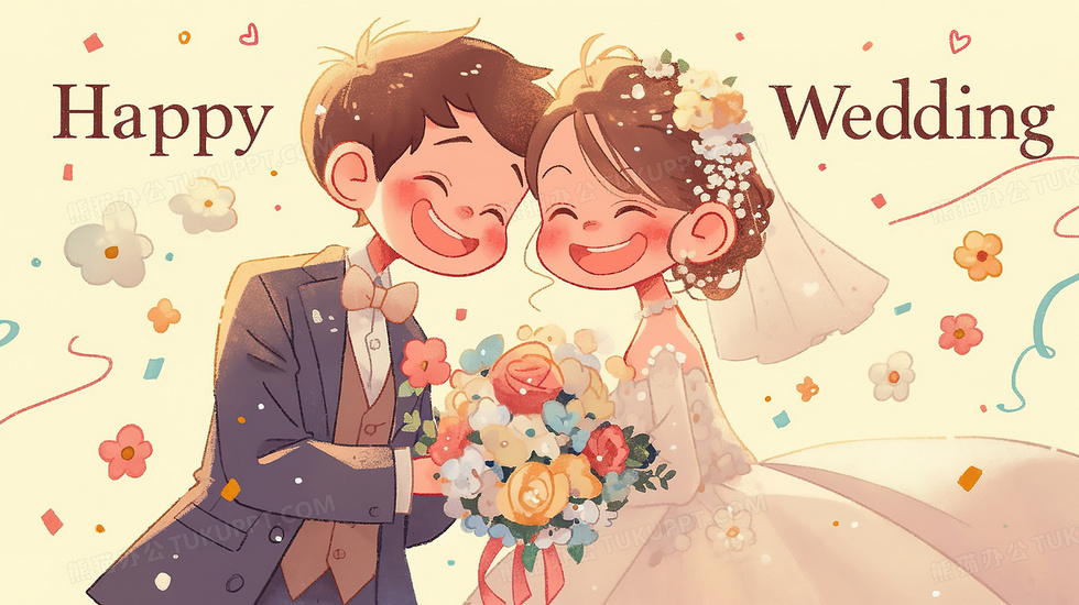 本作品内容为手绘卡通婚礼请柬新郎新娘结婚插画, 格式为 jpg, 大小3 MB, 图片尺寸为2912 x 1632, 源文件无水印, 欢迎使用熊猫办公。 如认为平台内容涉嫌侵权,可通过邮件:tousu@tukuppt.com提出书面通知,我们将及时处理。