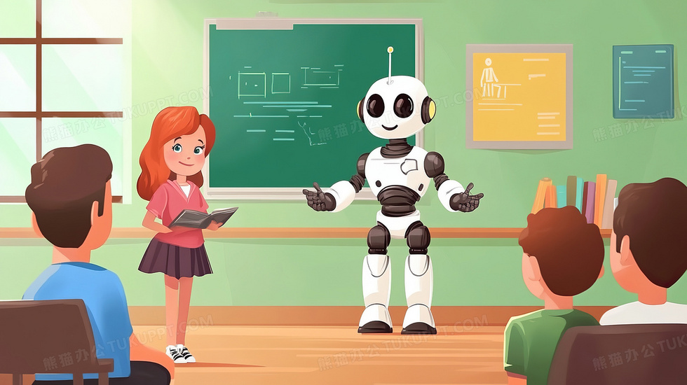 本作品内容为机器人在课堂上教学插画, 格式为 jpg, 大小2 MB, 图片尺寸为2912 x 1632, 源文件无水印, 欢迎使用熊猫办公。 如认为平台内容涉嫌侵权,可通过邮件:tousu@tukuppt.com提出书面通知,我们将及时处理。