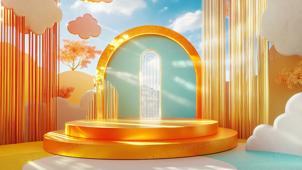 本作品内容为橙色C4D电商促销立体展台背景, 格式为 jpg, 大小3 MB, 图片尺寸为2912 x 1632, 作品中背景图片无需修改, 源文件无水印,可以直接使用, 欢迎使用熊猫办公。 如认为平台内容涉嫌侵权,可通过邮件:tousu@tukuppt.com提出书面通知,我们将及时处理。