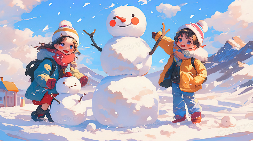 本作品内容为冬天雪地堆雪人的小朋友插画, 格式为 jpg, 大小3 MB, 图片尺寸为2912 x 1632, 源文件无水印, 欢迎使用熊猫办公。 如认为平台内容涉嫌侵权,可通过邮件:tousu@tukuppt.com提出书面通知,我们将及时处理。