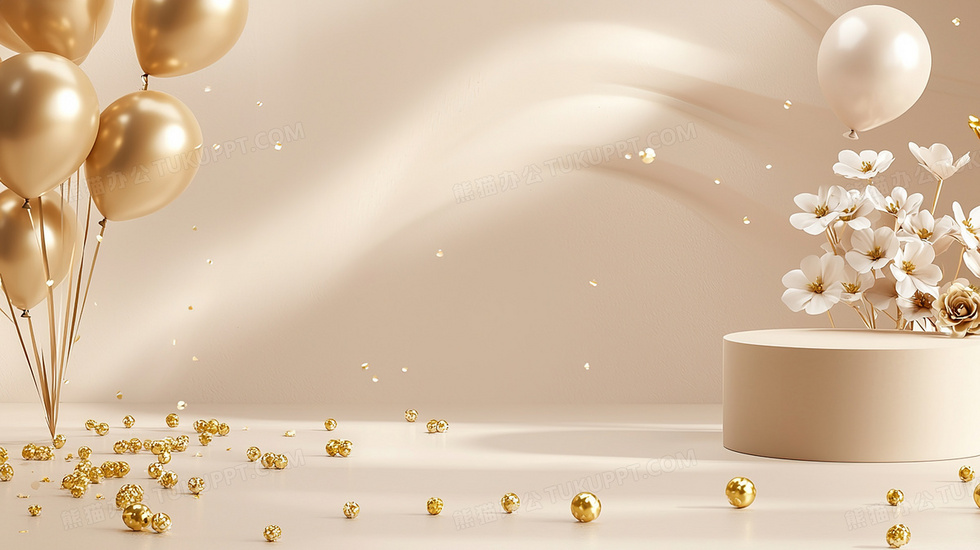 本作品内容为土豪金气球展台装饰背景, 格式为 jpg, 大小2 MB, 图片尺寸为2912 x 1632, 作品中背景图片无需修改, 源文件无水印,可以直接使用, 欢迎使用熊猫办公。 如认为平台内容涉嫌侵权,可通过邮件:tousu@tukuppt.com提出书面通知,我们将及时处理。